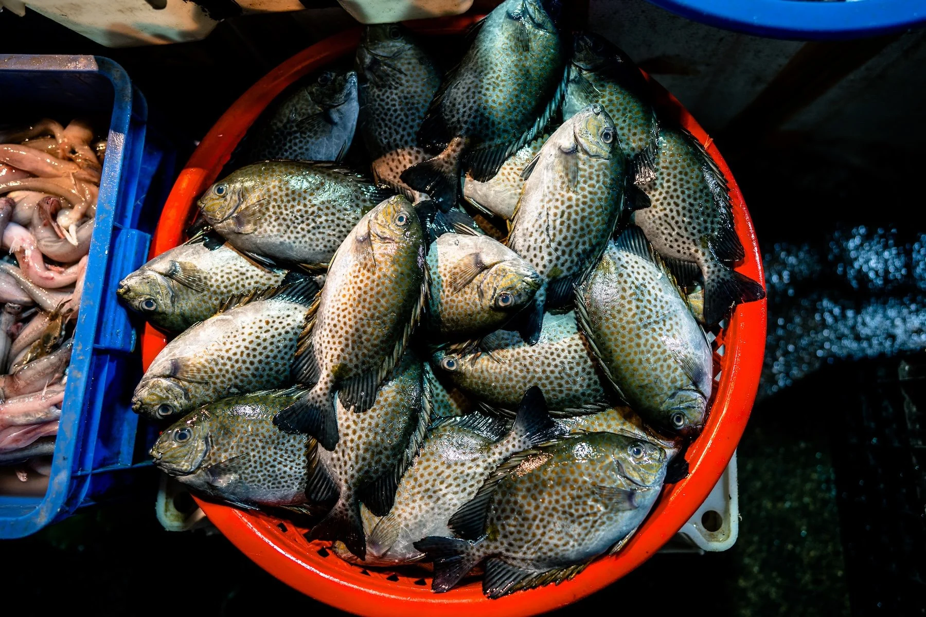 The market runs roughly from midnight to 6 a.m., with peak activity between 1 and 4. Arrive no later than 1:30 if you want to see the full build — vendors setting up, the first wholesale buyers moving through. By 4:30 the energy begins to shift toward breakdown and departure, which offers its own set of images: the exhaustion, the accounting, the first light starting to grey the sky over the bridge.