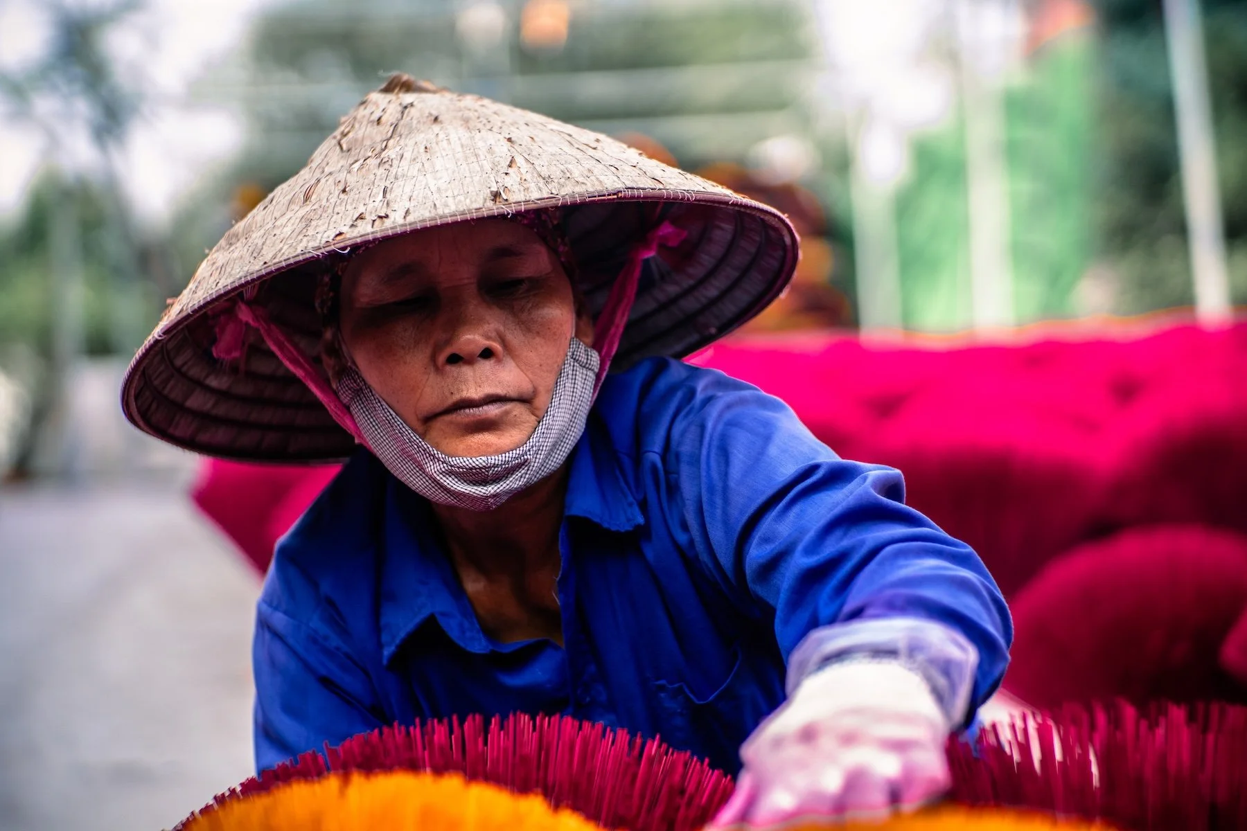 We spend significant time in the craft villages surrounding Hanoi — places where a single trade has defined a community for generations. The pottery village. The rice paper village. The incense village (this year, we're swapping that last one for the drum village, which I'm excited about). These aren't quick stops. We're there long enough to slow down, to watch people work, to find the light, to make pictures that require patience rather than reflexes. They are, in other words, exactly the kind of environments where Ibarionex's light-first, frame-first approach pays off most.
