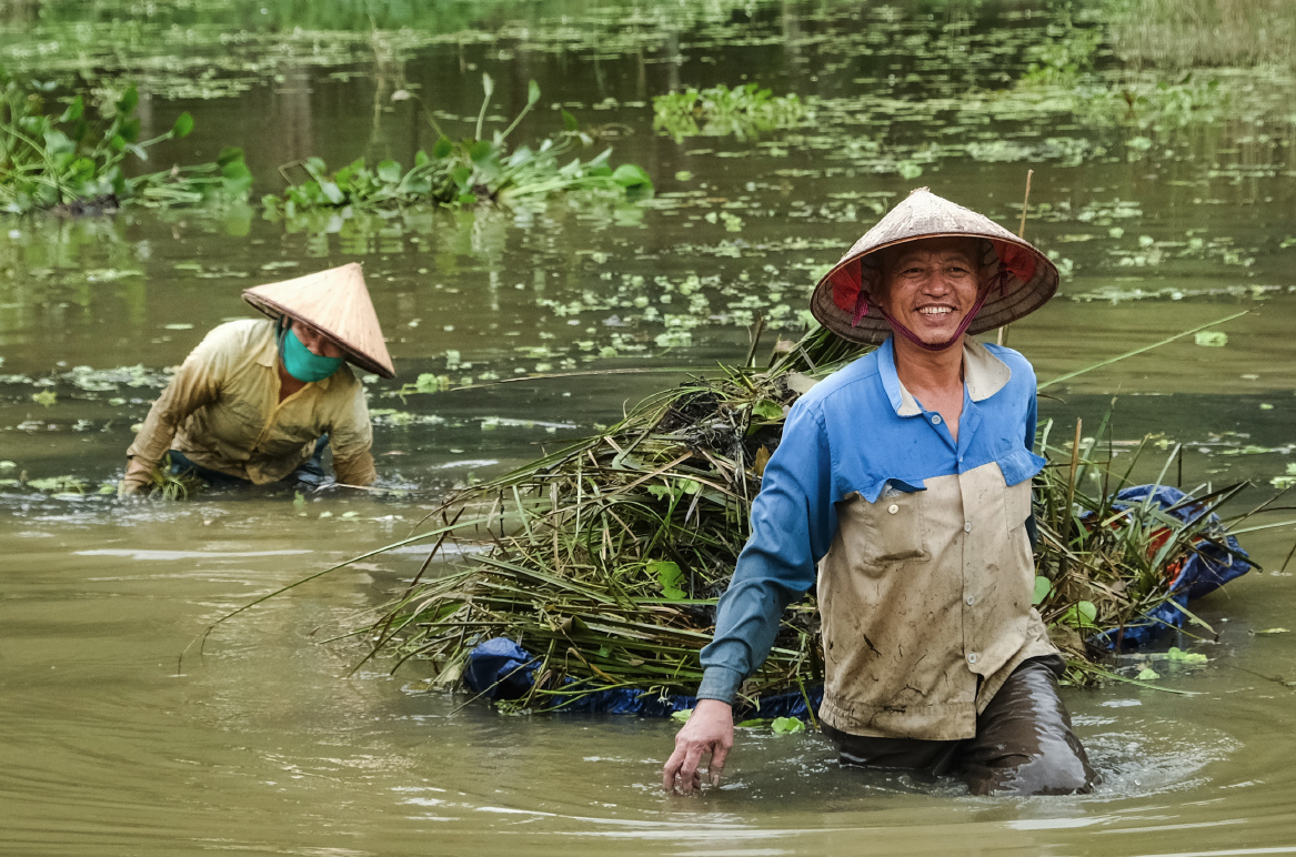 Waist-deep in the waterways of Ninh Bình, a farmer looks up mid-harvest and gives you everything. © Martin Howard / X-Pedition Hanoi 2022